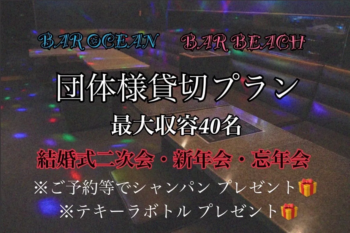 BARBEACH・BAROCEANでの団体様ご予約受付中です!!忘年会、結婚式二次会の貸切も♂なお、時間帯についてはお電話でのご相談も承りますのでお気軽にご連絡くださいませ。